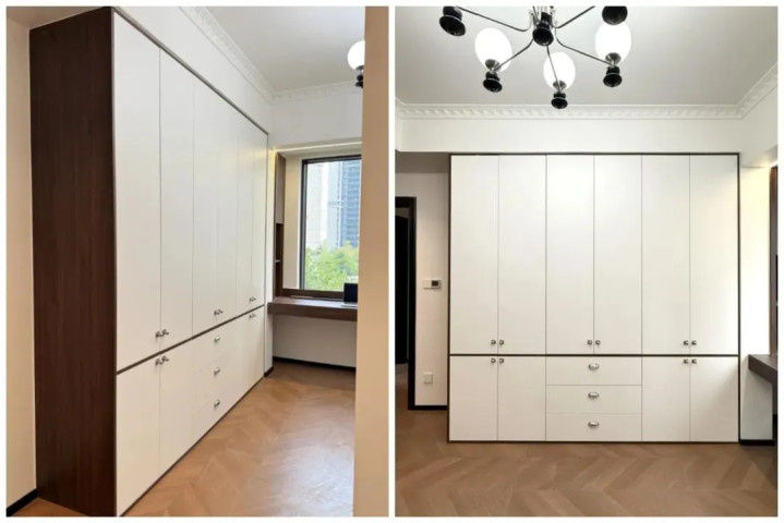 定制柜子时,柜门多为洁白无瑕,而柜体则多为木纹质感。