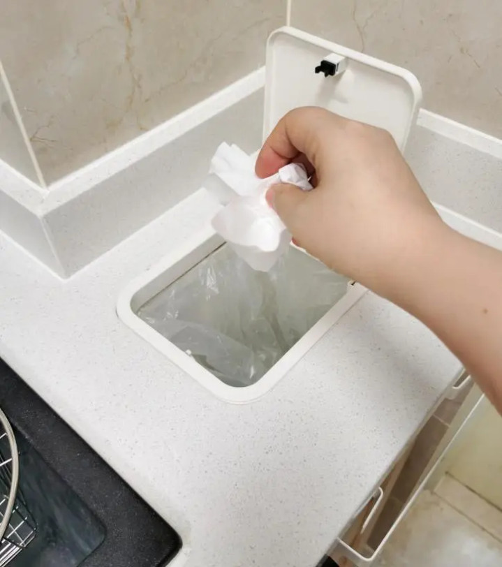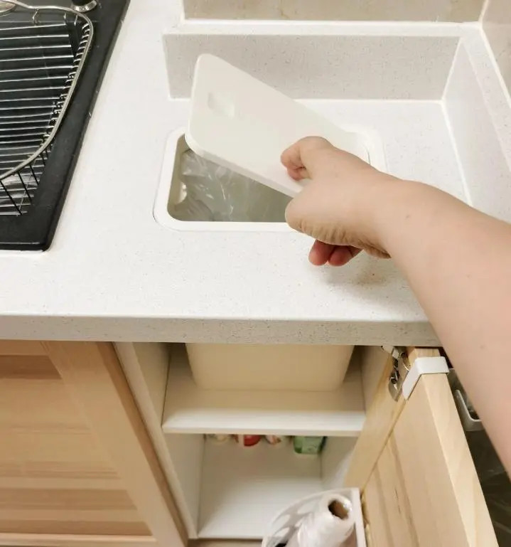 入住前,我对橱柜嵌入式垃圾桶充满期待,认为其设计人性化。