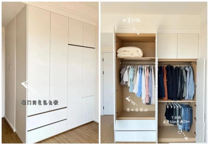 见光板,正是为解决这一问题而生,它能以与柜门同色的木板包裹柜体裸露处,使整体更加和谐统一。
