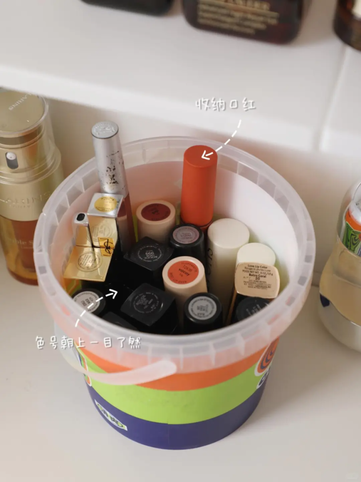各位女生还可以直接使用奶茶杯用来收纳口红,将口红的色号朝上,这样在拿取的时候也非常的方便。