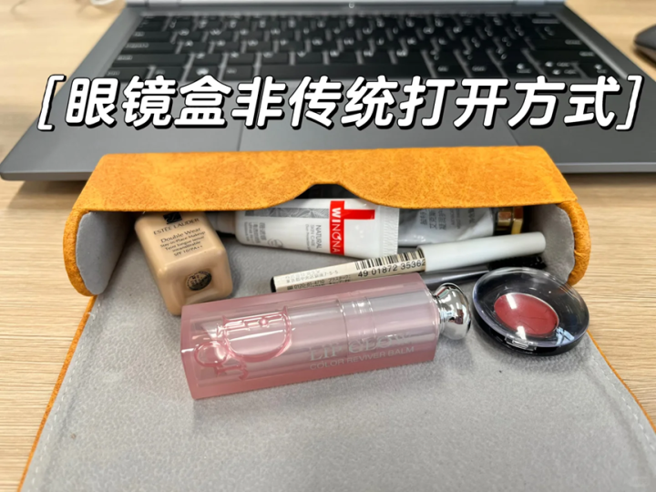 这个时候就可以将需要用到的化妆品放置在眼镜盒里,当做一个便携式的化妆包。