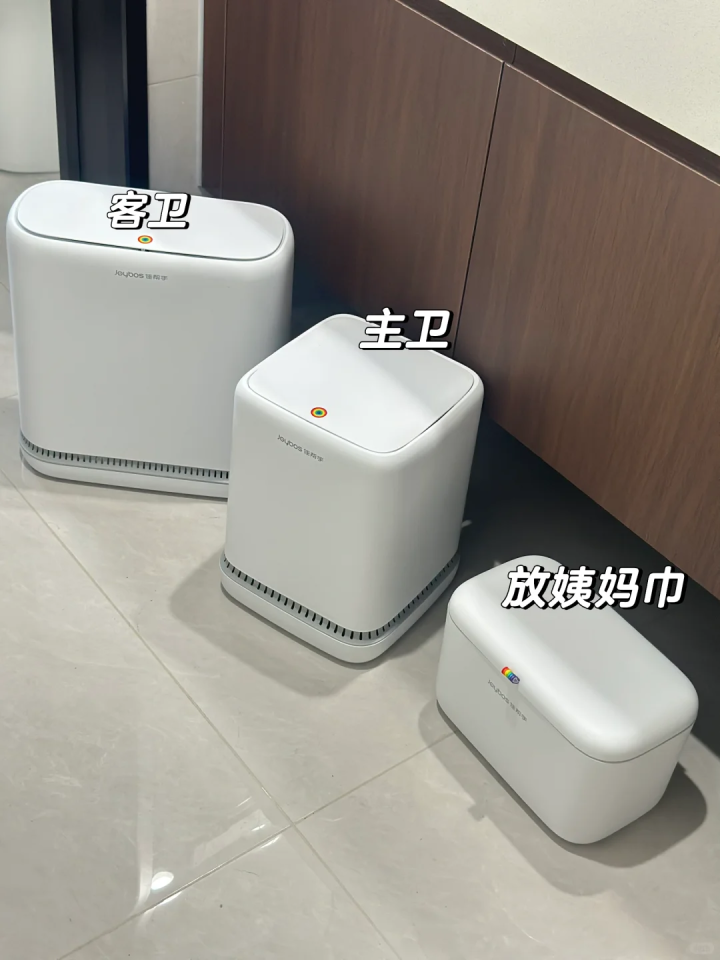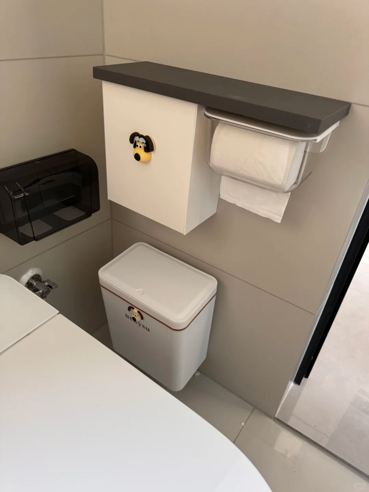 将卫生间常用的纸巾,湿巾,姨妈巾以及其他的一些物品,直接放置在壁挂垃圾桶里,