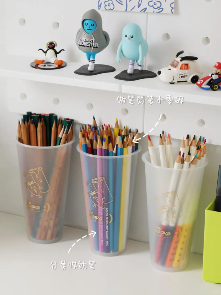 将奶茶杯放在办公桌或者是书桌上,就可以用来收纳圆珠笔或者是其他的一些文具。