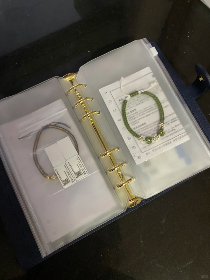 大家就可以使用这种活页本来收纳一些首饰,这个要比大家专门花钱买的首饰收纳盒还要好用。