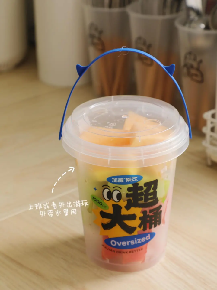 平时上班或者是外出游玩的时候,也可以使用洗干净的奶茶杯,用来当做水果杯,带一些水果。