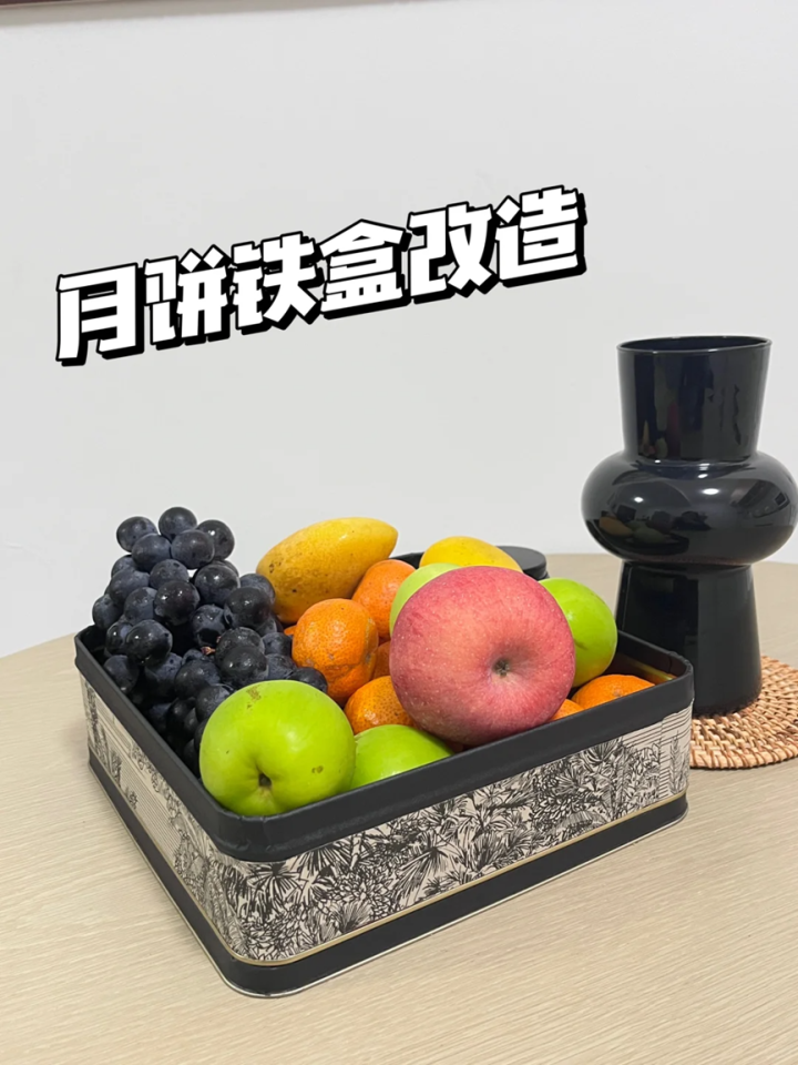 另外大家还可以将月饼的盒子改造成桌面的水果盒,不仅可以用来放置清洗过后的水果,还可以用来收纳一些桌面的杂物。